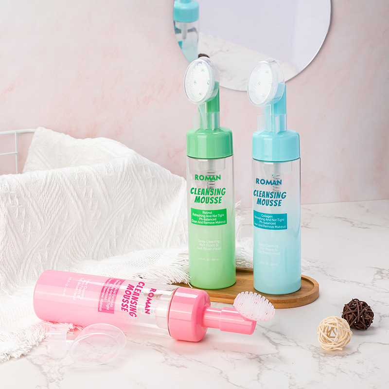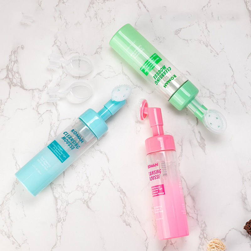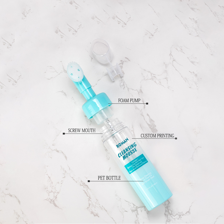 50ml 60ml 80ml 100ml 120ml 150ml Pele Soft Touch Limpador corporal Lavagem facial Garrafas de espuma de plástico para animais de estimação com bomba de loção de escova de silicone , esqueça as mãos bagunçadas e os produtos de limpeza diluídos. O inovador frasco de espuma equipado com uma cabeça de escova de silicone incorporada transforma o ritual diário de limpeza facial numa experiência excepcionalmente eficiente e prazerosa. Basta pressionar a bomba e uma nuvem de espuma densa e perfeitamente arejada é gerada instantaneamente e aplicada diretamente nas cerdas de silicone macias e flexíveis. Isso significa que não há mais espuma nas palmas das mãos ou dificuldade para aplicar géis aquosos – a espuma rica está pronta para aplicação imediata e direcionada. Os utilizadores deslizam a suave escova de silicone na pele, desfrutando tanto da ação de limpeza eficaz da espuma como de uma micromassagem calmante que estimula a circulação sem irritação, tornando-a ideal para remover a sujidade diária e preparar a pele.